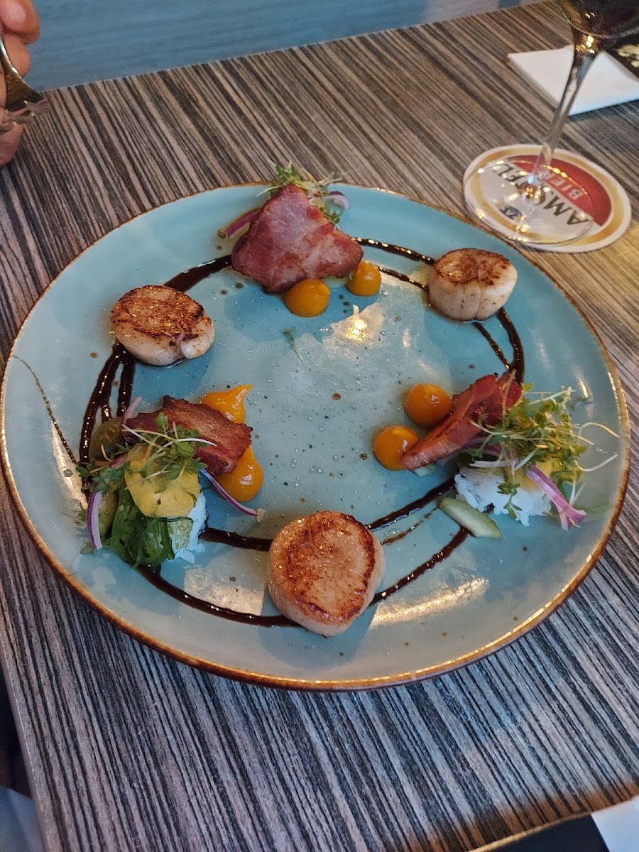 For those who appreciate seafood, Toff, Eten En Drinken doesn't disappoint. The Hecht Mit Risotto Und (Pike with Risotto) is a popular choice, offering a delicate balance of flavors that highlights the freshness of the fish paired with creamy risotto. Another dish that is sure to impress is the Jakobsmuscheln (Scallops). Paired with a touch of elegance, these scallops are a real treat for anyone who loves seafood. But the Coquilles Met Sushirijst stands out as a truly innovative dish, combining the creamy sweetness of scallops with sushi rice, wakamé, and mango-it's a flavor explosion that will leave a lasting impression.